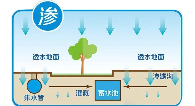 改變各種路面、地面鋪裝材料,改造屋頂綠化,調(diào)整綠地豎向,從源頭將雨水留下來然后“滲”下去。