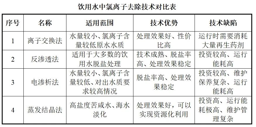 (2)水源特性:水源的水質(zhì)特性對氯離子去除技術(shù)的選擇有很大影響。例如,水源中的氯離子濃度、pH值、溫度、共存離子等都會(huì)影響技術(shù)的適用性。